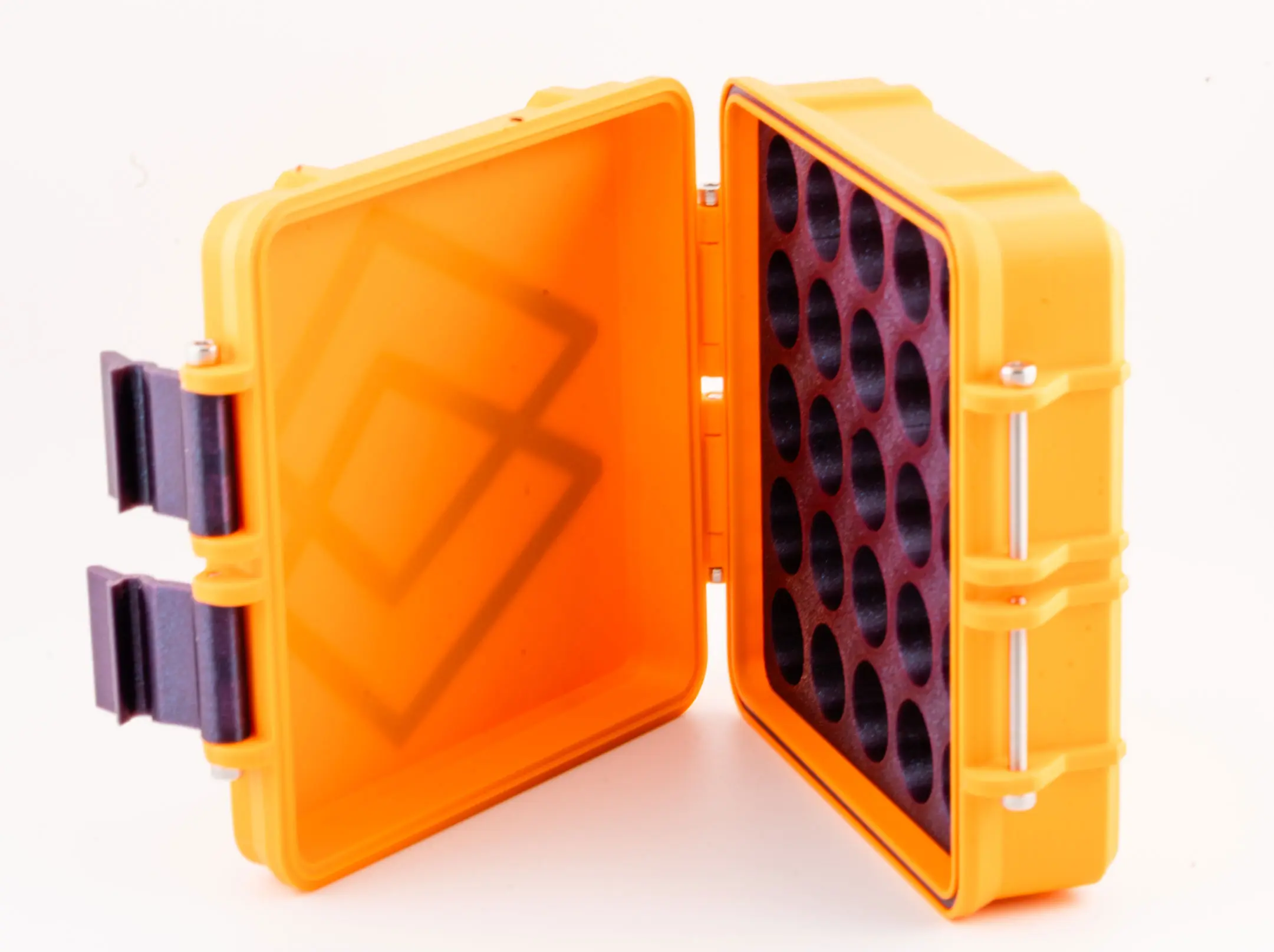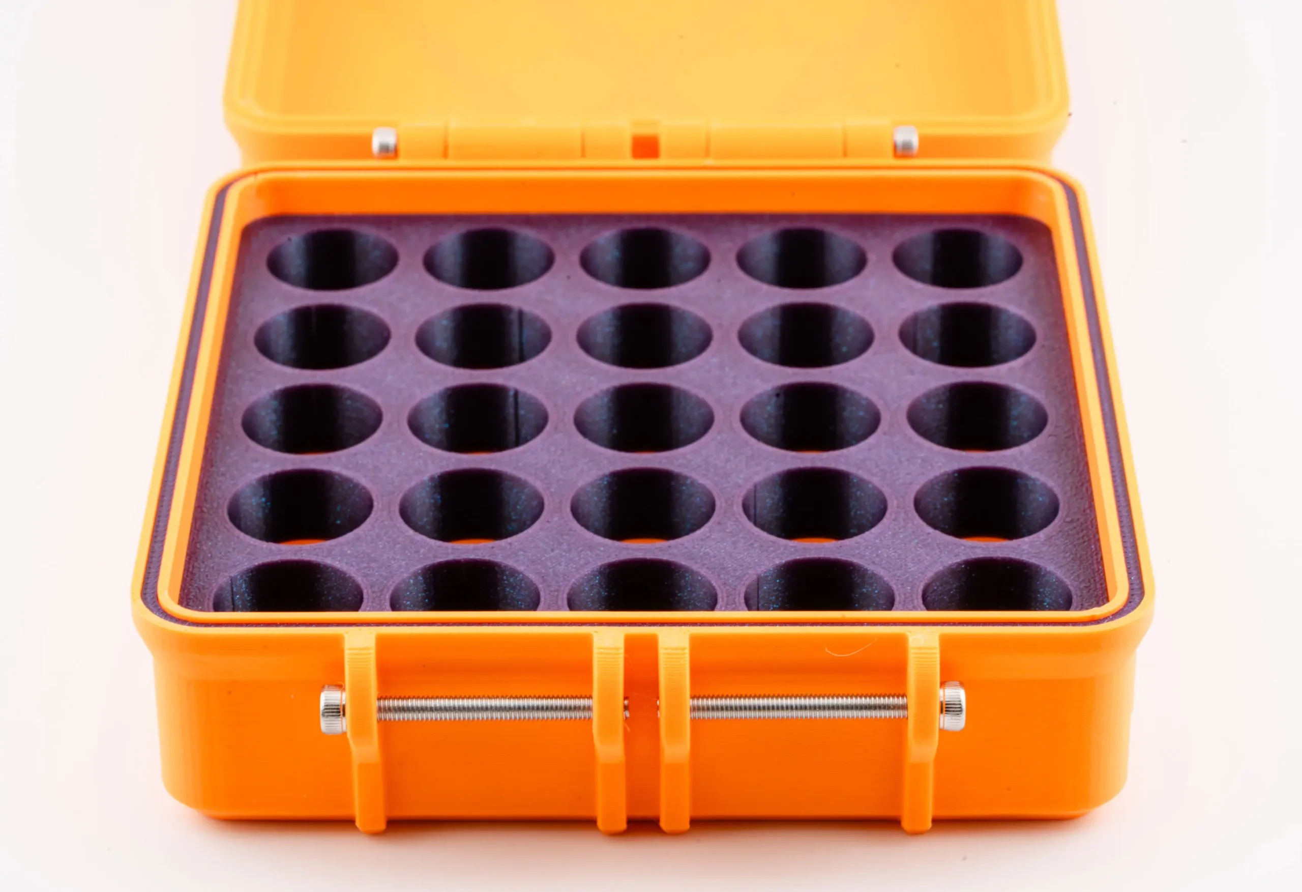 Stand out while staying organized with the Orange & Galaxy Purple Nexaph Vial Case. This vivid 3D-printed case is designed to store 25 vials securely using a firm, form-fitting insert.